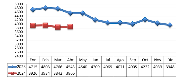 TRM PROMEDIO MES AÑO 2023 VS 2024
