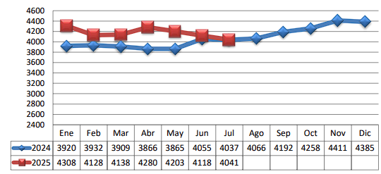 TRM PROMEDIO MES AÑO 2024 VS 2025