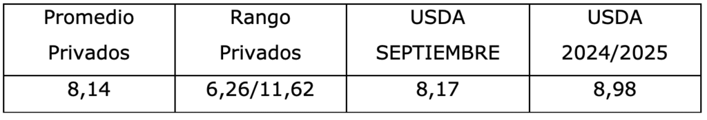CIFRAS PRIVADAS ANTE EL INFORME DEL USDA DE OCTUBRE NO